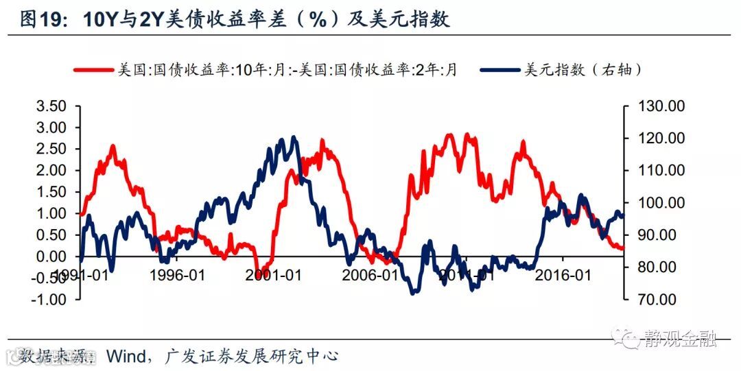 影响一:美股有较大概率重启跌势。目前10年期与3个月期限美债收益率已经倒挂,10年期与2年期美债收益率差值只有13BP,不排除倒挂可能。基于前文,这种状况将对市场信心产生负面影响,因此此间美股表现大概率重启跌势,也将伴随着美股估值(CAPE)的调整。