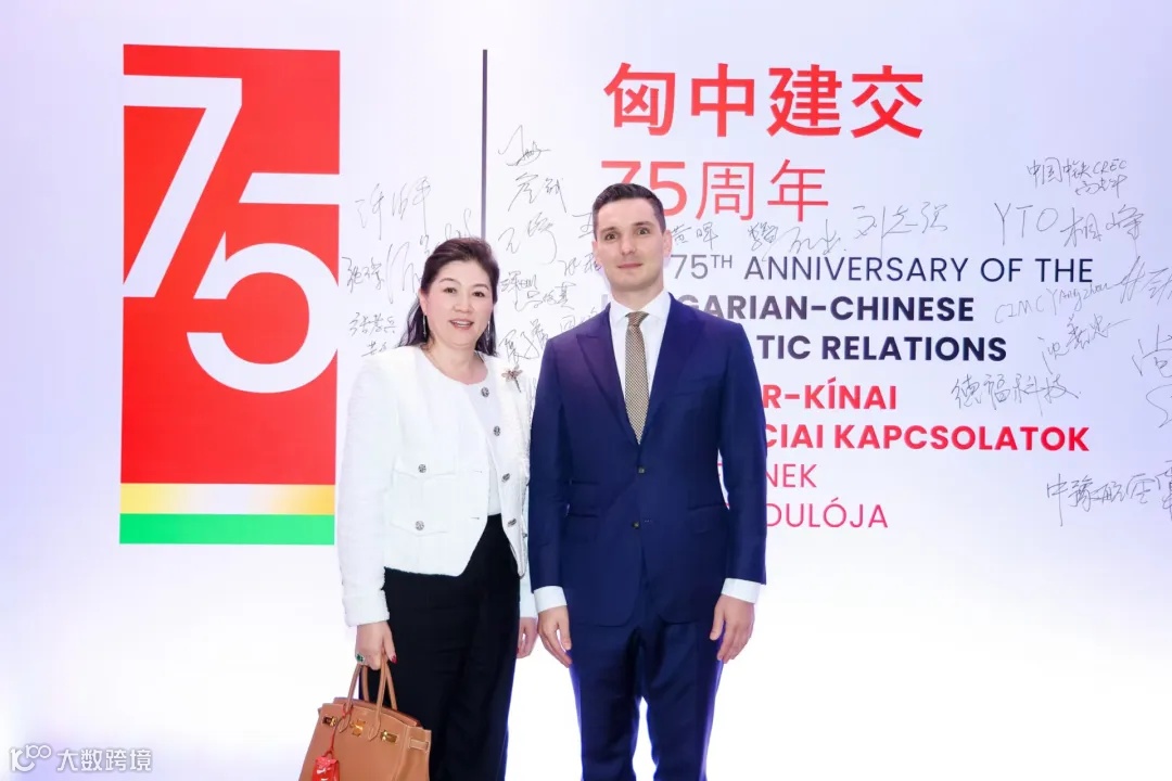 侨外集团总裁丁颖女士荣幸地接受了匈牙利驻华大使白思谛先生的诚挚邀请,出席由匈牙利驻华大使馆主办的匈中建交75周年庆典晚宴