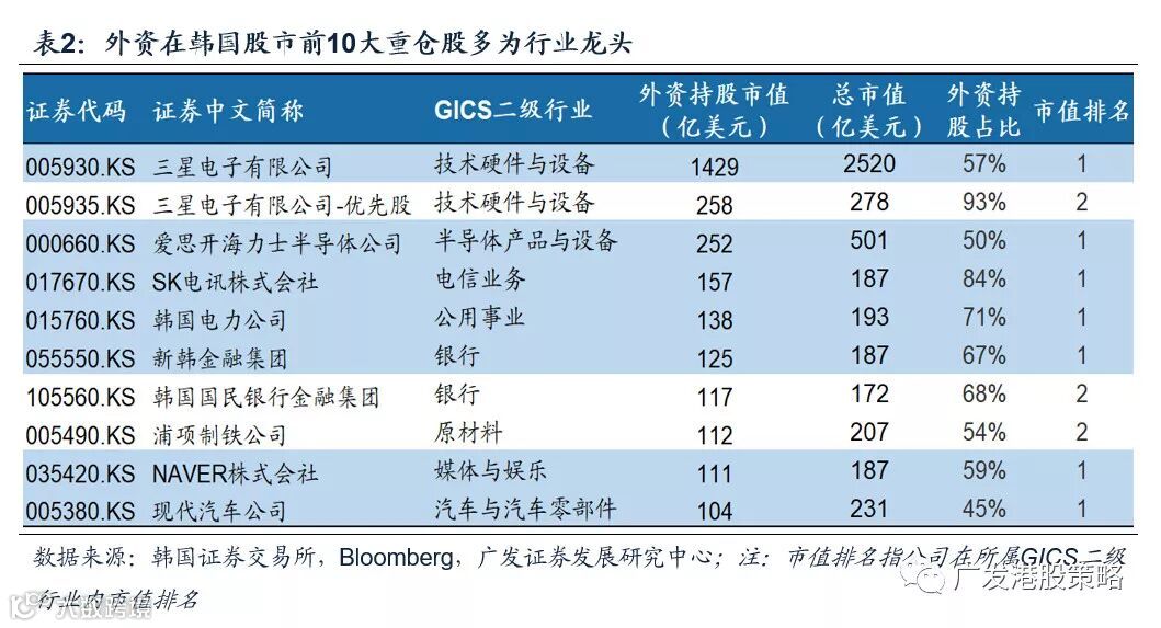 韩国和中国台湾股指完全纳入MSCI之后,外资配置影响力持续攀升,在多个超配行业及公司已凸显“定价权”效应: