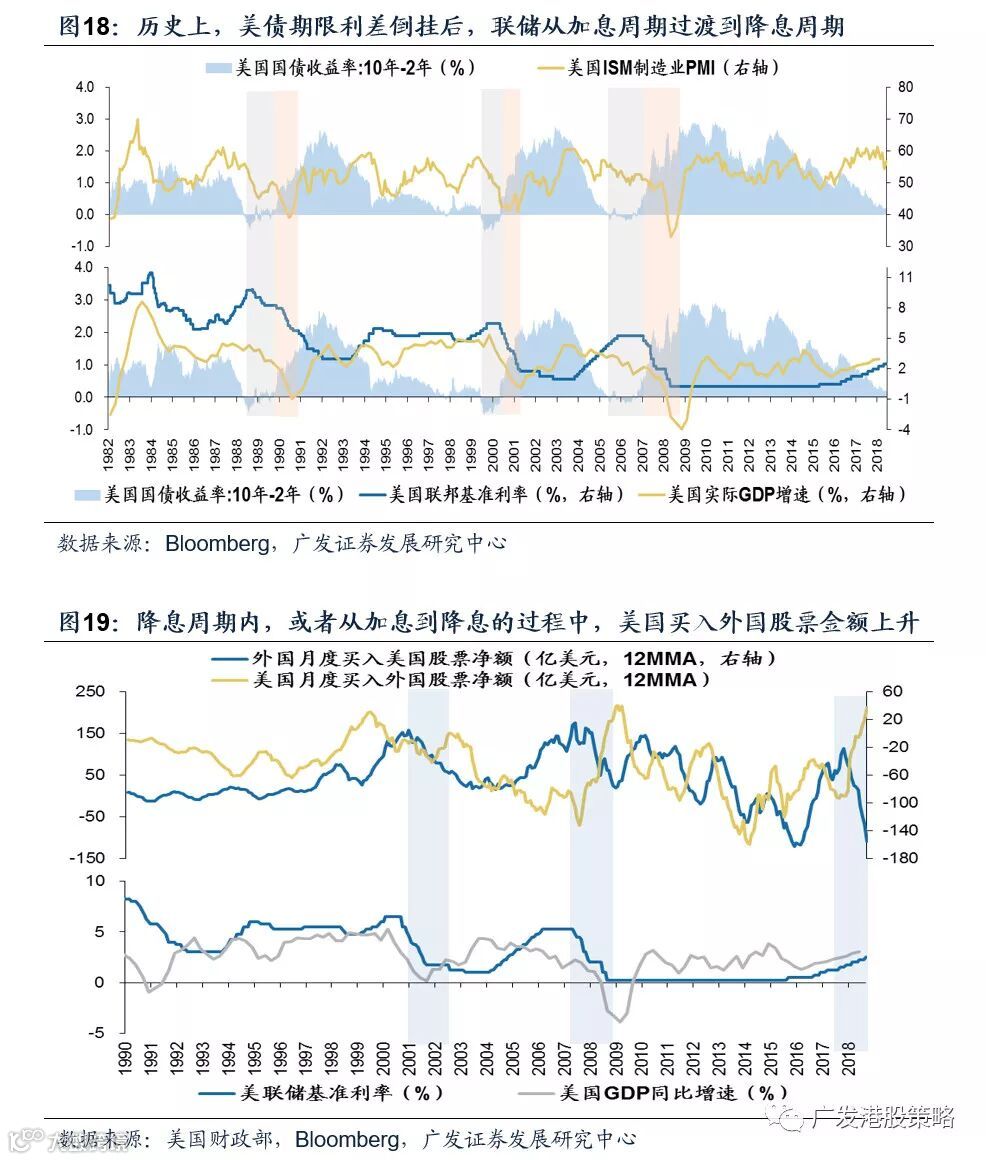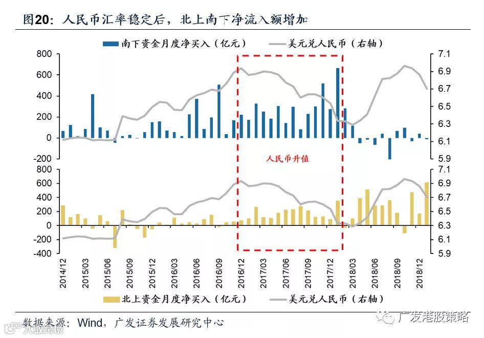 我们在2019年度港股策略展望报告《渐入佳境》中提出,“中美周期从错位到回归”影响跨境资金流向,美联储从加息周期过渡到降息周期、人民币汇率从快速贬值到企稳的过程中,资金流出美国市场、流入中国市场的动力提升。