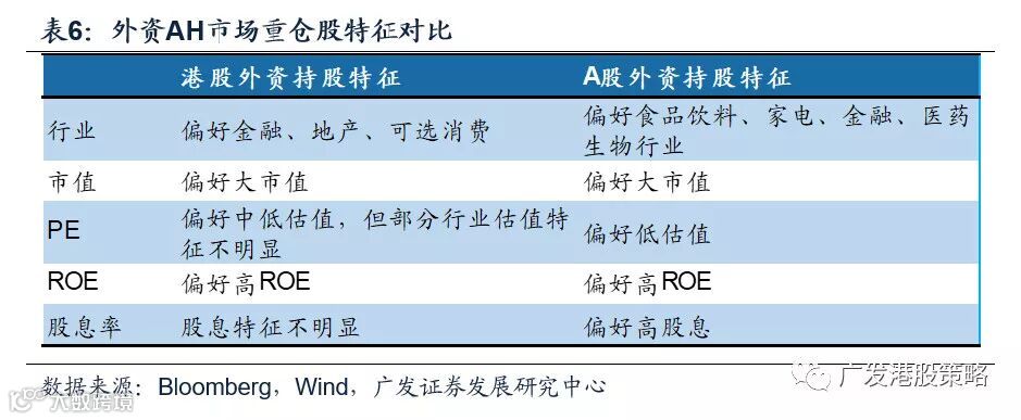 从重仓持股来看,外资在AH市场的持股理念“求同存异”——均偏好大市值、高ROE公司,但A股外资重仓股还关注低估值、高股息特征;从具体行业来看,AH市场各有所长——较A股而言,港股电信服务、公用事业、地产板块或更易成为外资偏好的领域。