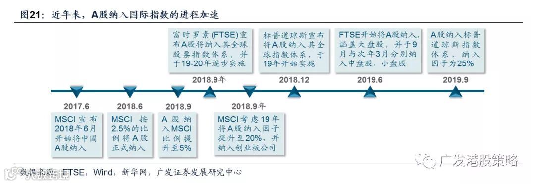 中长期而言,外资增配中国权益资产基于一个朴素的逻辑——中国资本市场开放的远景。以A股为例,近年来A股国际化进程加速推进,包括AH市场互联互通、沪伦通建设、A股加快纳入MSCI、富时罗素和标普道琼斯等、QFII与RQFII制度改革等,A股对外开放的制度红利逐渐凸显,未来将引导更多境外资金进入,中国资本开放有望孕育较大机遇。