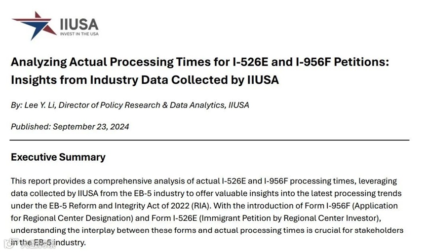 9月23日,通过对这些I-956F和I-526E案例数据的深入分析,IIUSA发布了这份综合报告,揭示了最新的处理趋势。