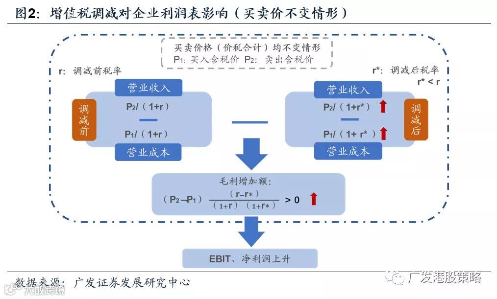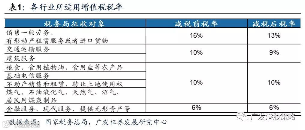 增值税下调,对港股盈利有什么具体的影响?本次增值税改革共涉及两档税率,16%税档下调至13%,10%税档下调至9%,6%税档不变。我们按照该减税方案进行测算: