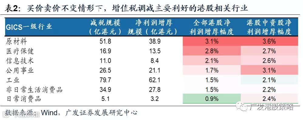 港股中受益于增值税下调的行业主要分布在制造业、火电、工业、信息技术硬件设备和消费制造等板块。