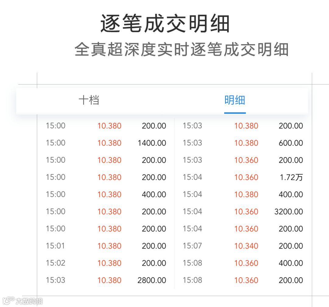 逐笔明细列出了每一笔交易的交易时间、交易价格、交易量,让投资者在交易量有大变动的早期就能看到迹象,并能决定买卖最佳时机。