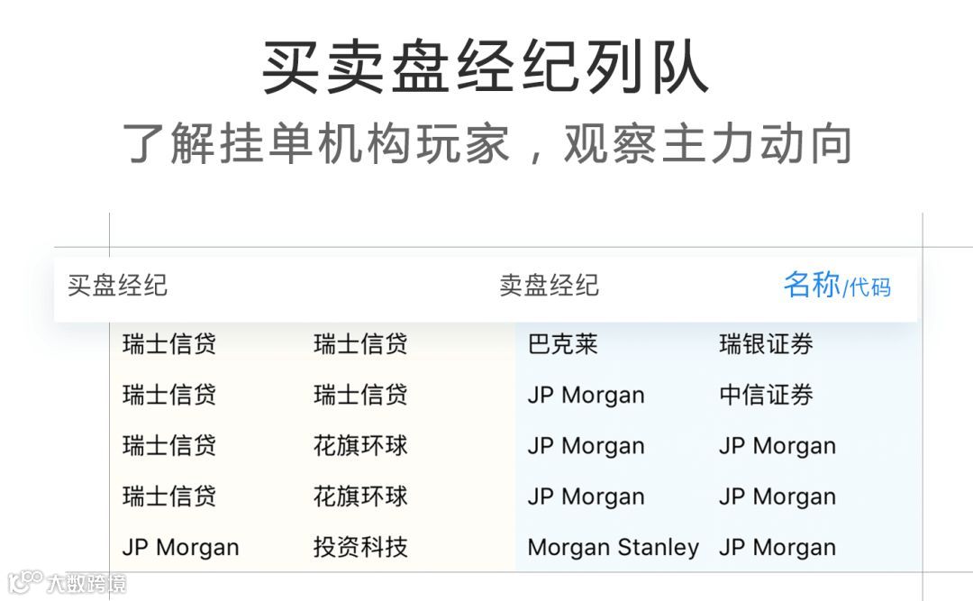透过买卖盘经经纪商列队的帮助,了解挂单的有哪些机构玩家。要用来观察主力动向。