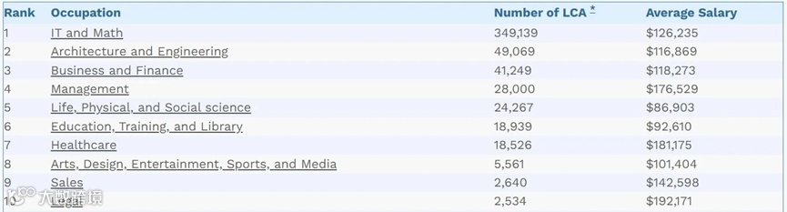 而myvisajob.com公布的《2024年H-1B签证报告》也显示,H-1B签证获签前5位的职业为——IT&Math、建筑与工程、商业与金融、管理学以及生命科学。与这些职业方向相关的专业领域,在申请H-1B时会更有优势,获签概率也会更大。