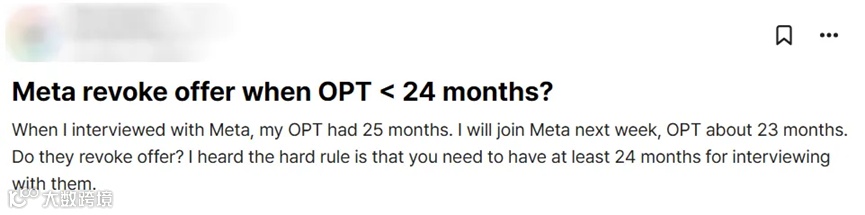 不仅是全职岗位,就连实习,也对身份有要求了——在某社交平台上,有网友表示:Meta貌似不招OPT剩余时间少于2年的人。