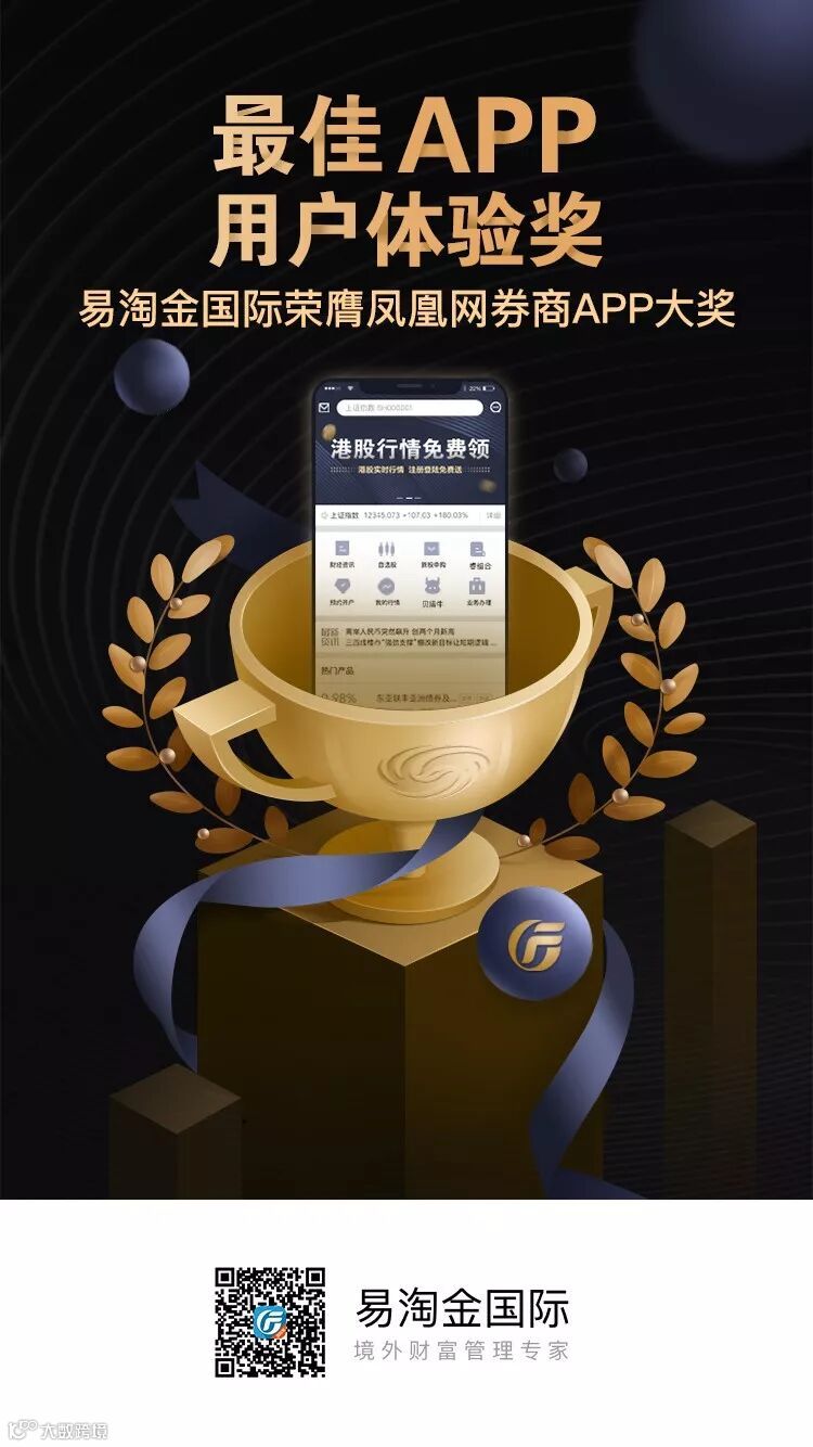 1月9日,由凤凰网财经及凤凰网港股主办的“凤栖梧桐共话狮山财经峰会”在香港举行,本届峰会以“融合创新 开拓发展”为主题,邀请经济学家、行业领袖、财经界精英凤栖梧桐共话狮山,畅谈 2019 年全球金融市场的机遇与挑战及粤港澳大湾区下的金融科技。广发证券(香港)经纪有限公司旗下的易淘金国际APP从多家参评券商中脱颖而出,斩获“最佳APP用户体验奖”大奖。