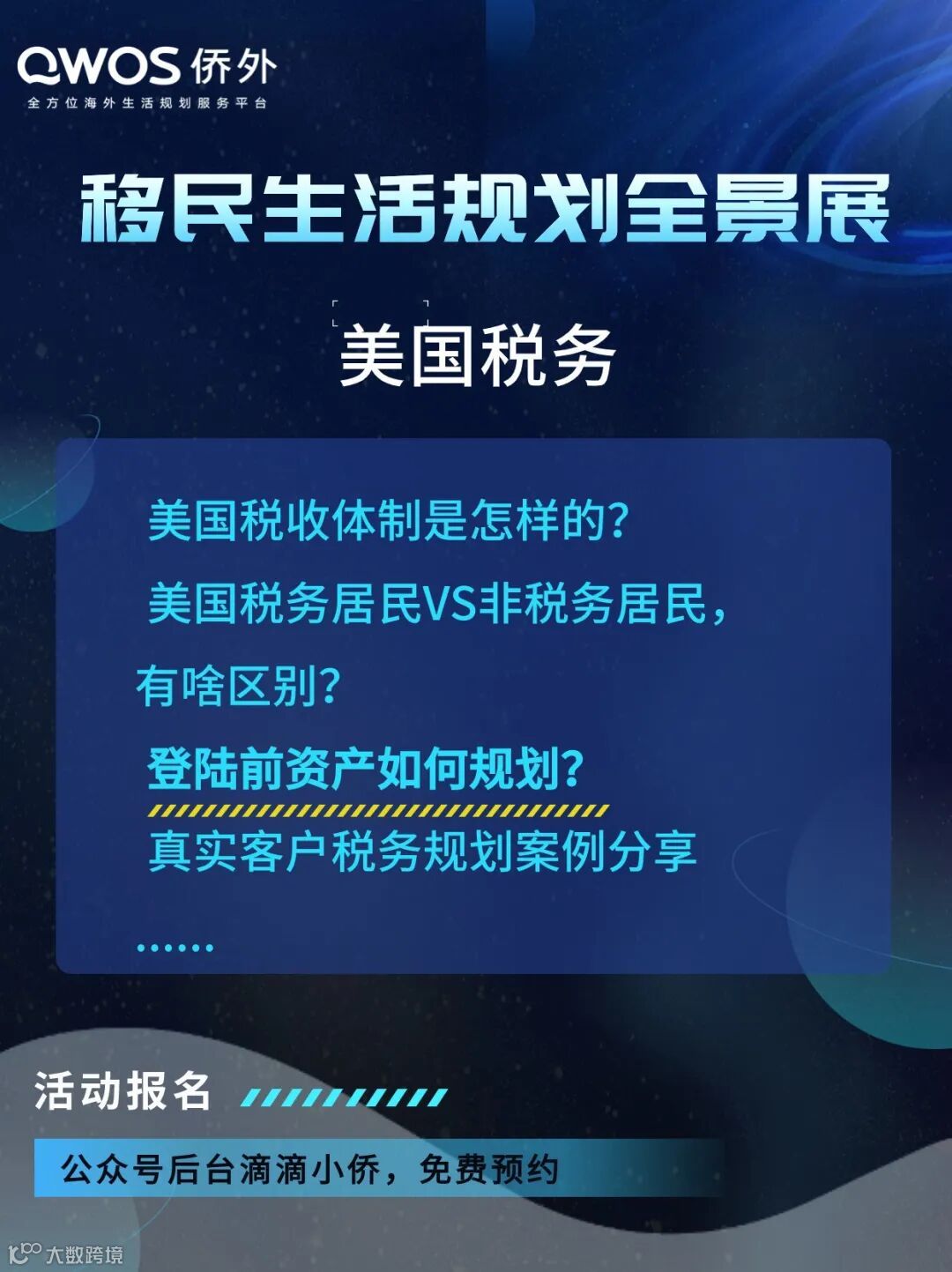 3月9日在北京举行的侨外“美国移民生活规划全景展”,将邀请税务专家详解美国税务,想了解更多的朋友,欢迎点击文末的“阅读原文”在线报名!