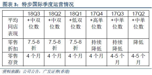 特步国际:三季度同店销售增速和二季度持平,延续复苏势头。渠道库存保持在4个月水平,零售折扣水平保持在20-25%的水平,渠道维持健康。
