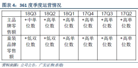 361度:三季度表现较差,主品牌零售额从二季度的高单位数增长下滑至中单位数增长,市场份额下滑。