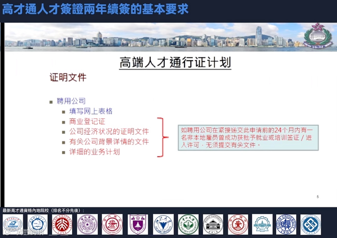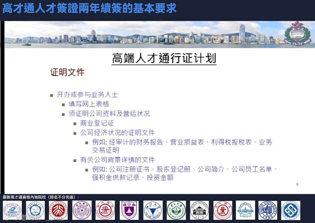 活动中,也介绍了受雇人士、开办或参与业务人士、受养人申请续签时所需要的文件: