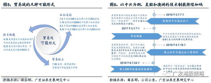 短期而言,2000亿美元商品加征关税的影响弱化,但若技术制裁加码,仍将压制港股市场情绪。美国政府当地时间8月23日启动针对中国的第二轮制裁关税,中国也启动反制关税,同时两国从22日起进行的贸易谈判并未达成有效协议。从汇率和股市的平淡反应来看,投资者对互加关税的影响已经消化。本周更值得关注的事件是澳洲禁止华为、中兴向其提供5G设备,出于非贸易因素的技术制裁再次加码。我们认为,投资者当前阶段更担心两大利空:一是涉及国家和关税额再次升级,二是贸易战形式演变为技术制裁或贸易孤立,将对港股造成进一步冲击。