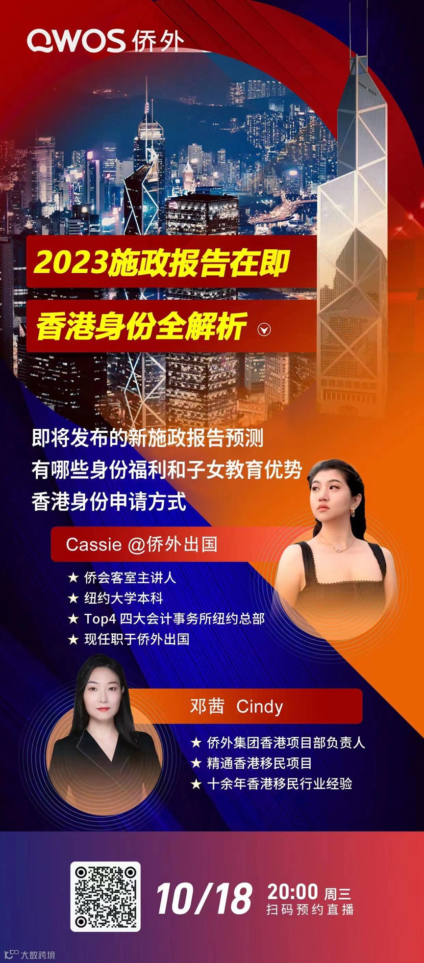 想了解更多的朋友,欢迎咨询侨外香港身份专家。有兴趣的朋友,也欢迎扫描下方二维码预约报名今晚8点的香港线上直播活动,我们的专家将为您详细讲解香港身份的方方面面,也将在现场为您答疑解惑!
