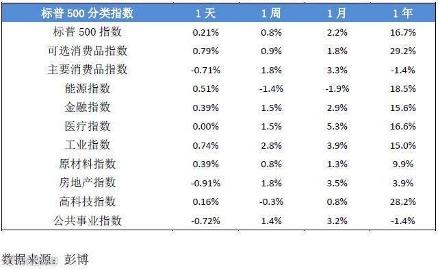 ▶ 板块方面,表现最好为可选消费品板块,升0.79%,其次为工业板块,升0.74%。