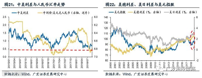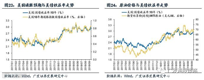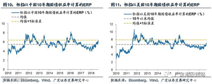 整体而言,无风险收益上行不利于港股市场表现,市场预期主要的分歧集中在中国无风险收益率的判断上。我们认为年底人民币汇率的压力仍然存在,中美经济预期同时下行阶段(图9),来自利差的约束不可忽视,年底前中国无风险收益率进一步下行的空间有限。
