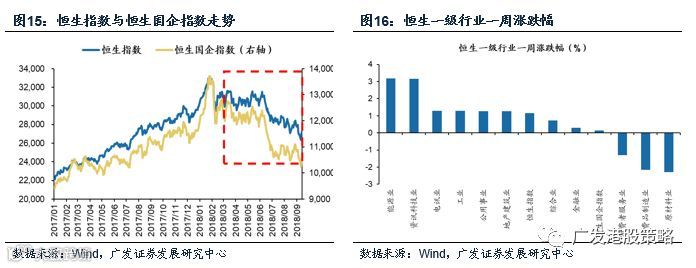 投资策略方面,中期内港股面临的“国内去杠杆”、汇率贬值、中美贸易战三大风险因素尚未释放完毕,维持相对谨慎观点。短期而言,“外患”仍在,市场回暖需等待更多积极信号累积,即通过“结构性政策”降低国内股权风险溢价。