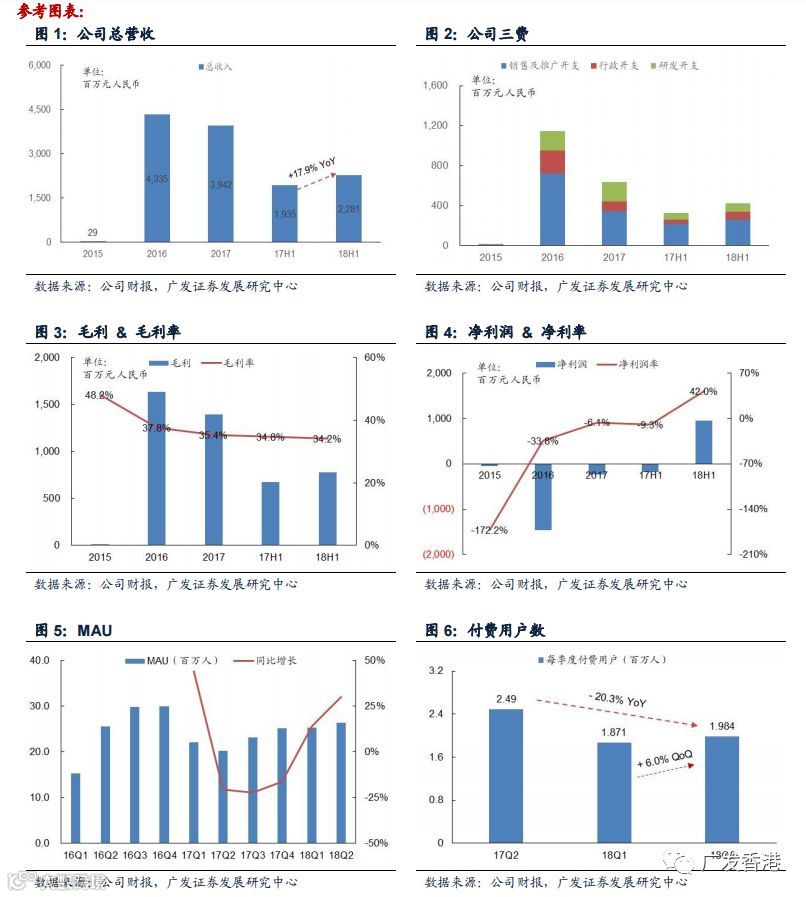 1、MAU和付费用户数在17H2触底回升,18H1环比增长。