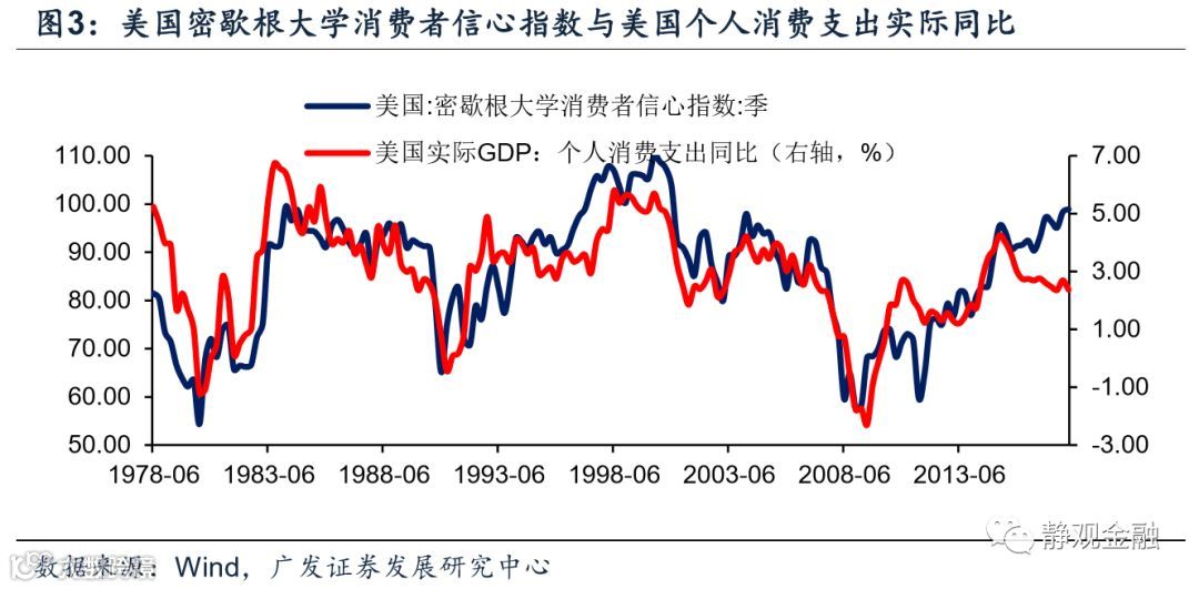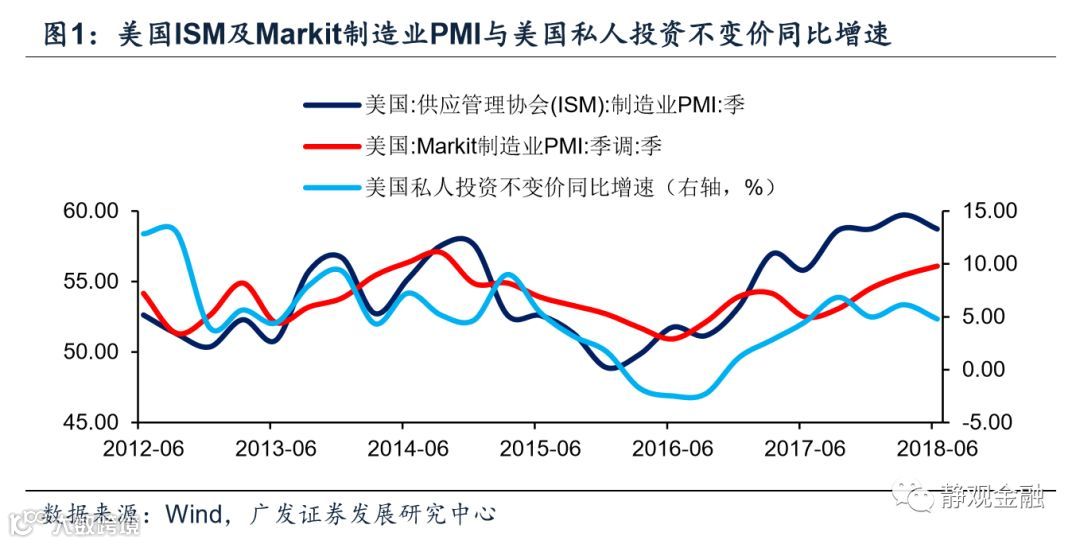 逻辑上,目前仍处于税改红利释放期,美国经济仍在加速。根据我们的估算,特朗普税改或令美国企业实际有效税率较去年下降3-4个百分点,对美国实际GDP同比增速拉动约0.5个百分点;美国经济分析局数据显示,受税改影响,美国个人所得税实际有效税率已由去年底的12.1%降至11.7%,该因素已对个人消费支出形成明显提振,或拉动实际GDP同比增速约0.3个百分点。当然,税改在一定程度上减少了政府部门对经济增长的贡献,综合评估本次税改或整体拉动今年美国经济0.5-0.6个百分点。且我们在报告《怎么看美国经济?》和《风险与平衡——2018年年中海外宏观经济展望》中指出,目前仍处税改红利释放期,美国三季度实际GDP同比增速有望高于二季度的2.9%。