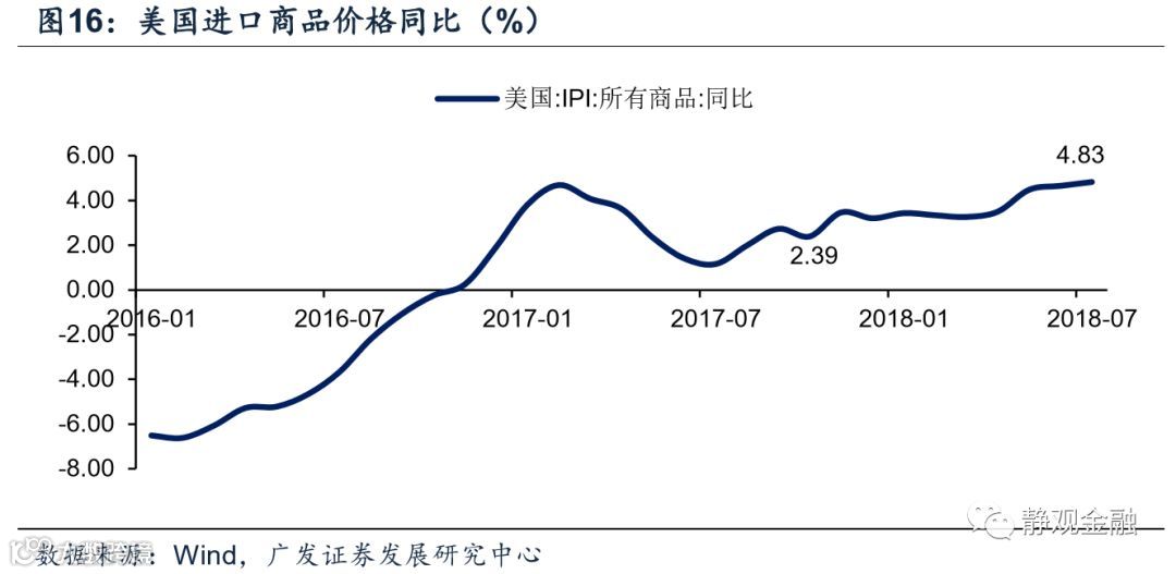 若美国对华2000亿美元商品加征关税措施落地,美国将面临更高的输入型通胀。根据我们的粗略估算,若美国对华2500亿美元商品加征25%的从价税,则将推升美国CPI口径通胀约0.4%。换言之,若未来一段时间美国对非美经济体的贸易保护措施进一步升级,则2019年美国CPI口径通胀中枢或将明显上移,破3%或为大概率。
