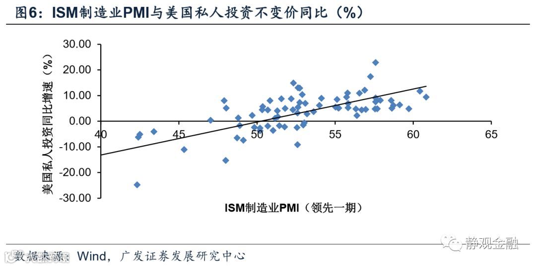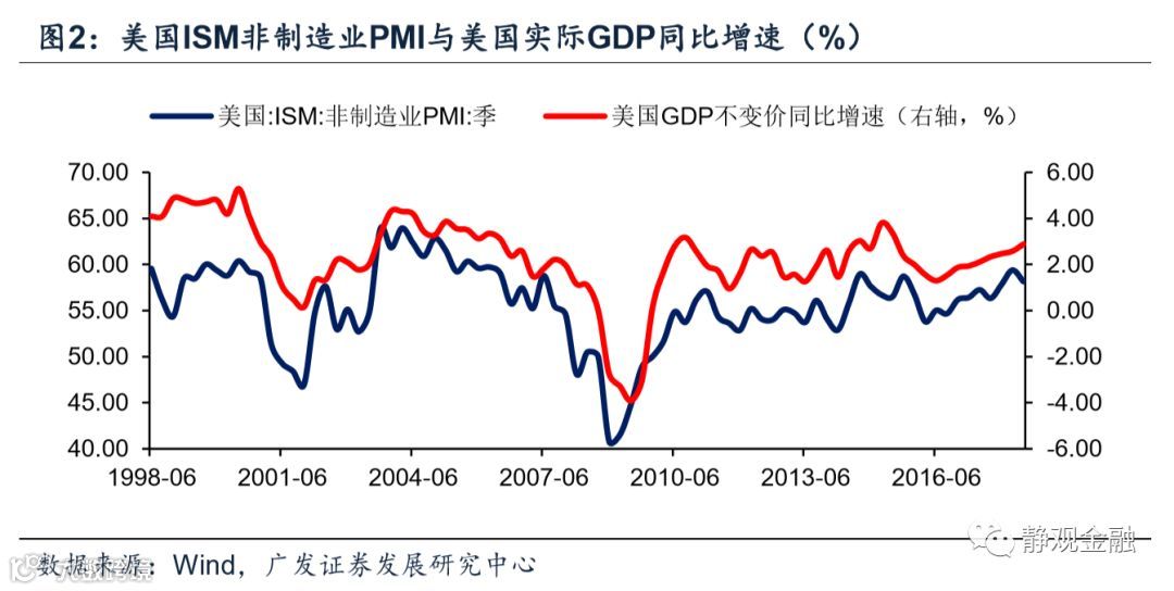 此外,由于美国以服务业主导,因此ISM非制造业PMI对美国实际GDP同比增速有较强的解释力。
