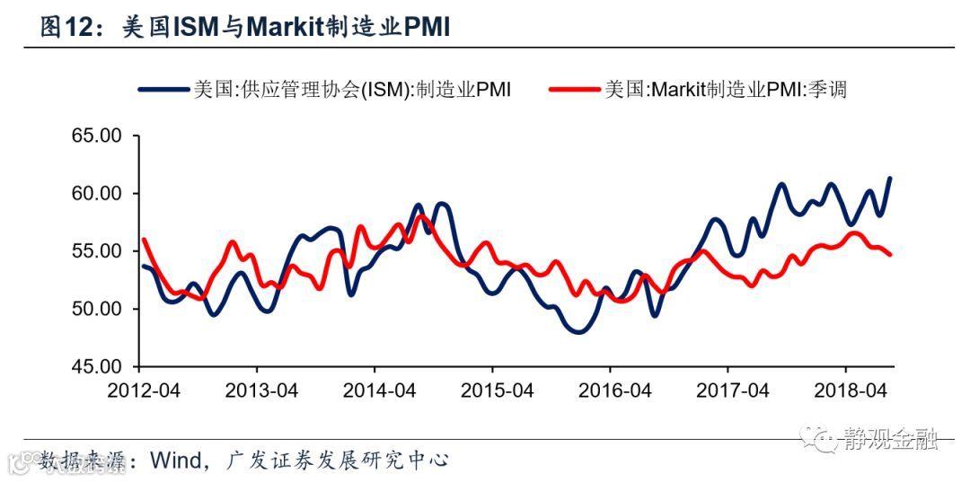第二、 指向性差异。ISM制造业PMI、ISM非制造业PMI为同步指标;Markit制造业PMI、密歇根大学消费者信心指数、Sentix投资信心指数及CLI为领先指标。
