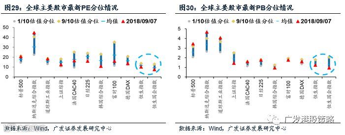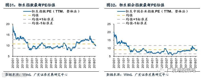 2018年港股中报并不算太差,恒生指数、恒生国企指数成份股中报归母净利润同比增长仍有17.9%和14.1%,属于过去几年内较高的增速水平。但投资者更加担忧的是增长的持续性,预计进入下半年港股上市公司将面临两重压力:其一为宏观需求下行压力的增加;其二为汇率增厚大概率转为汇兑损失。恒生主要指数中,又以国内经济和人民币贬值风险敞口高的国企指数面临的增速下行压力更大。