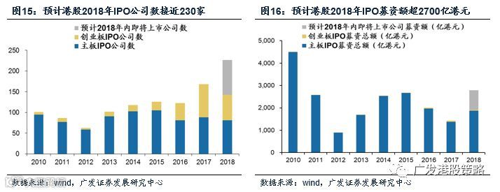 本周我们选取的港股焦点图解为:港股下半年迎来IPO小高峰。港股IPO下半年明显加速,仅7、8两个月港股就有42家公司IPO,累计募集1404.7亿港元;我们预计,2018年IPO累计募资额将超过2700亿港元。