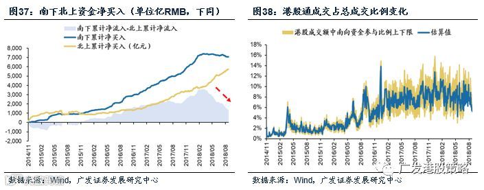 本周(9.3-9.7)南下资金在连续净流出5周后转为小幅净流入,北上资金则转为净流出。港股成交额中南下资金参与占比小幅下降。
