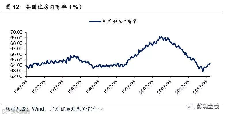 表象上:2016年三季度开始,美国住房自有率持续8个季度回升。地产库存快速消化,并带动新屋开工增速中枢抬升。
