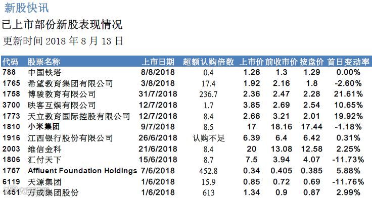 新股近期表现
