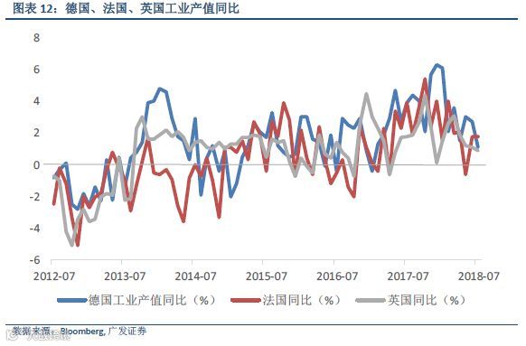 德国8 月工业产值数据将在10 月8 日公布,法国、英国工业产值数据将在10 月10 日公布。7 月德国工业产值同比为1.1%,法国工业产值同比为1.8%,英国工业产值同比为0.9%。