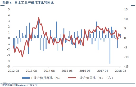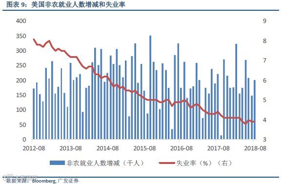 美国9月密歇根大学消费者信心指数终值报100.1,高于8月终值96.2。9月美国制造业PMI指数报59.8,虽然略低于预期60.1,但仍然显示出美国经济强劲的势头。据PMI构成指数显示,美国新出口订单指数为56.0,进口指数为54.5,分别较8月份上涨0.8和0.6,显示出9月美国制造业受中美贸易战影响不大。与此同时,美国制造业生产指数为63.9,在手订单指数为55.7,分别较8月份上升0.6和下降1.8,反映出美国制造业产能快速扩张同时,需求也相继增长。美国8月工业新订单同比增速为10%,其中耐用品新订单同比增速为11.8%,进一步确认美国经济强劲的上升势头。