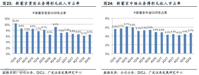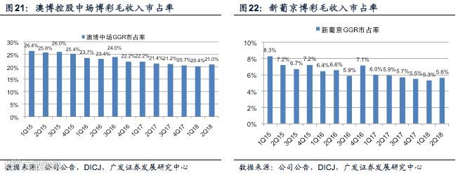中场业务推动,新葡京博彩毛收入市场份额出现环比提升:18年2季度,新葡京博彩毛收入市场份额为5.6%,比18年1季度高出0.3%。其中中场业务的市占率在2季度达到了4.7%,连续第二个季度出现环比提升。而贵宾业务毛收入市场份额为6.5%,环比提高0.4%,在过去一年内首次出现环比提升。