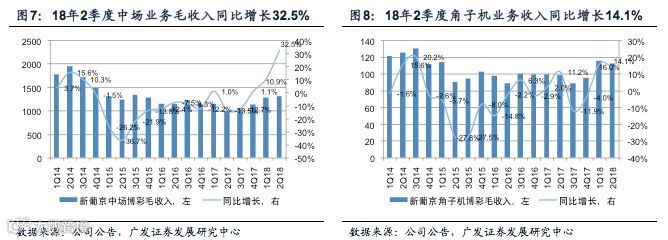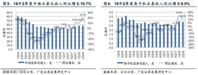 中场业务快速增长带动公司博彩毛收入增长。18年2季度,澳博控股实现博彩毛收入111.1亿港币,同比增长11.3%。其中,中场业务和角子机业务分别实现毛收入57.46亿港币和2.88亿港币,同比增长18.7%及14.6%,是公司博彩毛收入增长的主要驱动因素。