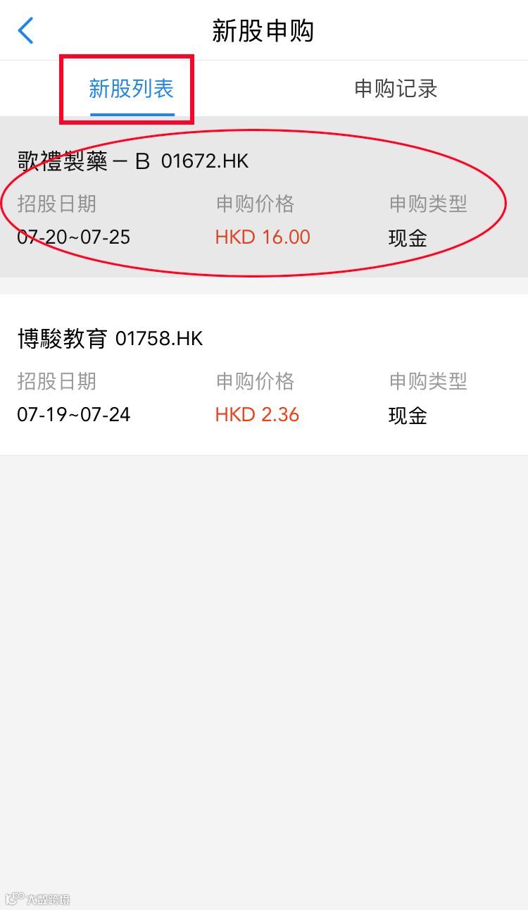 图① 点击“新股申购”;图②选择新股;图③招股详情