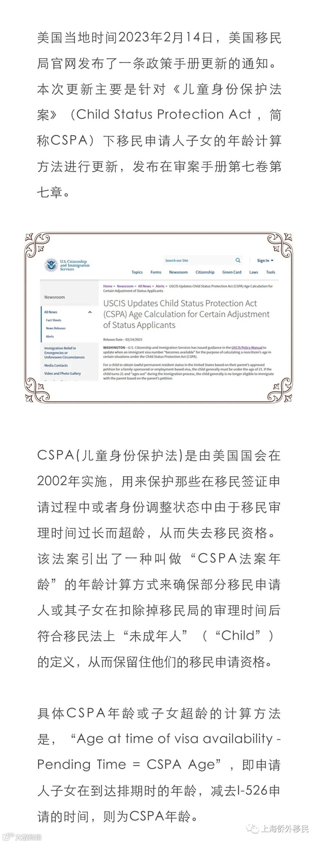 导读:美国当地时间2023年2月14日,美国移民局官网发布了一条政策手册更新的通知。