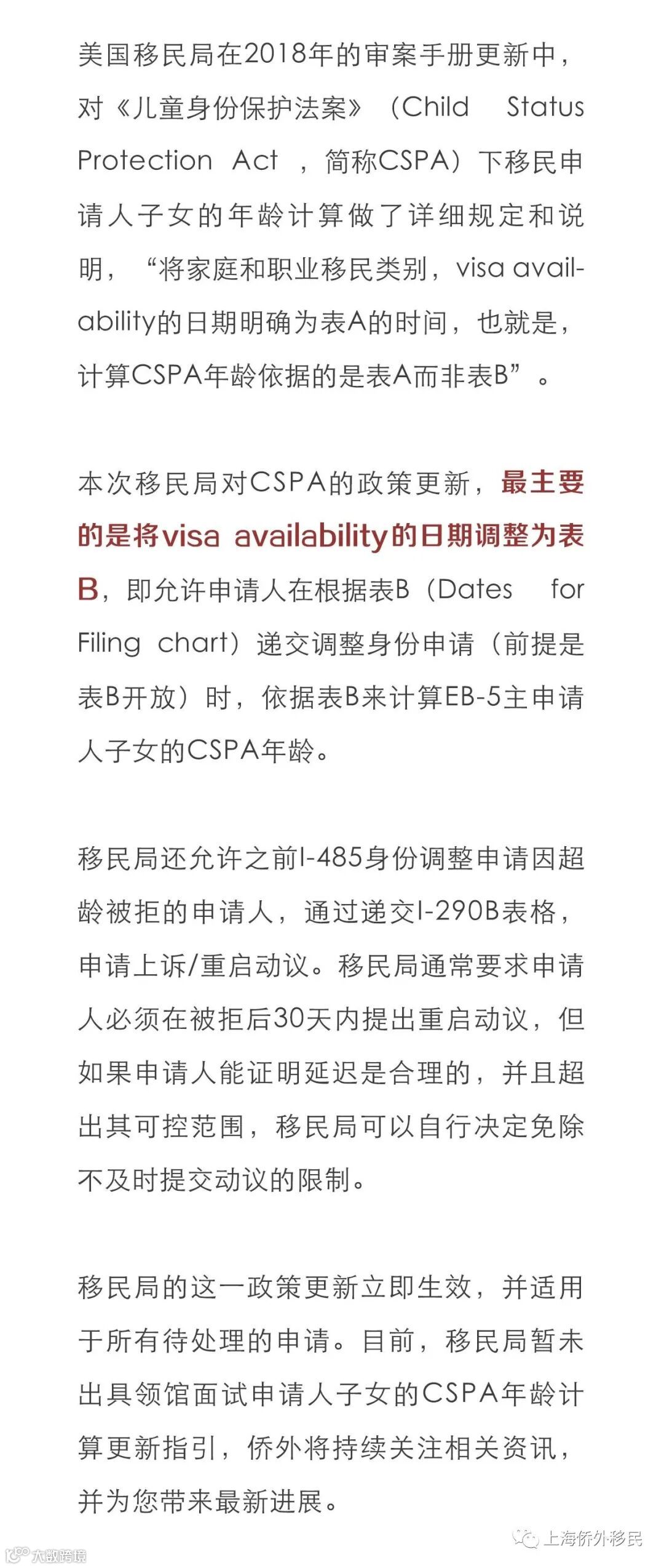 利好!美国移民局更新CSPA年龄计算,I-485按表B冻龄