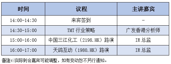 为此,我们将举办一系列香港上市公司的路演活动,本期上海站特别邀请了香港上市公司中国三江化工(2198.HK)以及天鸽互动(1980.HK)为我们介绍企业规划与发展。