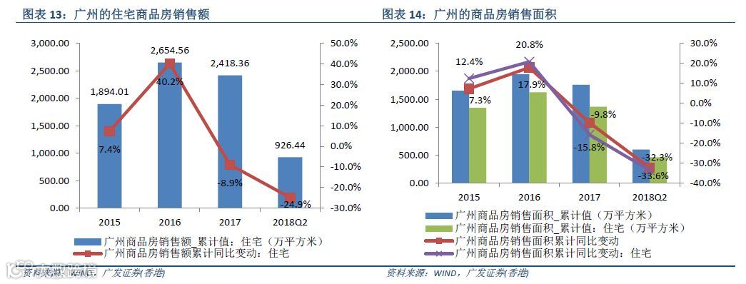 2017年至今,广州的房地产开发投资稳中有升,其中,住宅开发投资完成额的同比变动幅度持续高于房地产开发投资,体现了广州住宅市场的较高景气度。