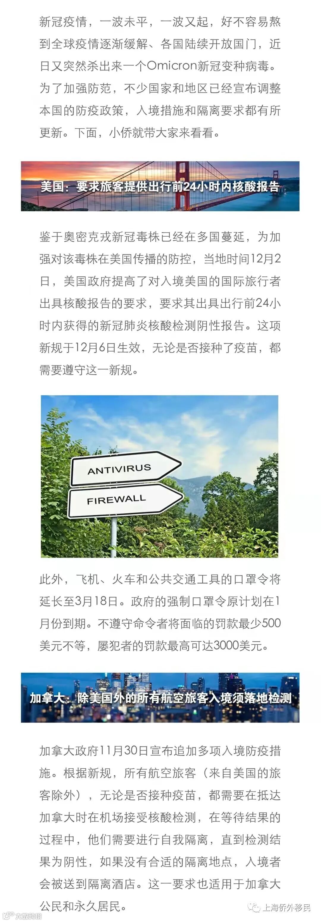 导读:为了加强防范病毒新变种,不少国家的入境措施和隔离要求都有所调整。