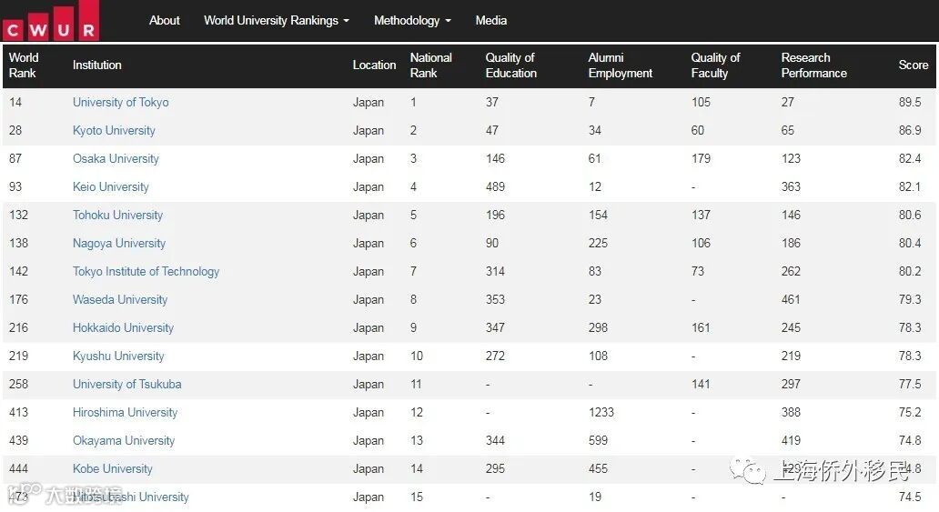 从教学质量上来说,在不考虑留学生比例等指标,只关注科研实力的CWUR世界500强名校排名中,2020年中国有41所大学入选,日本则仅有15所大学入选。但是东京大学排名14、京都大学排名28,分列亚洲国家前二。