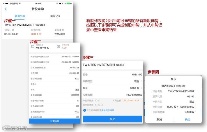 新股申购界面如下: