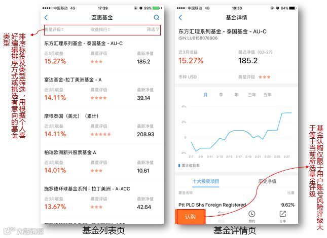 ③ 同时,互惠基金可支持直接在线认购,认购标准为用户账号风险评级大于等于当前所选基金评级即可。