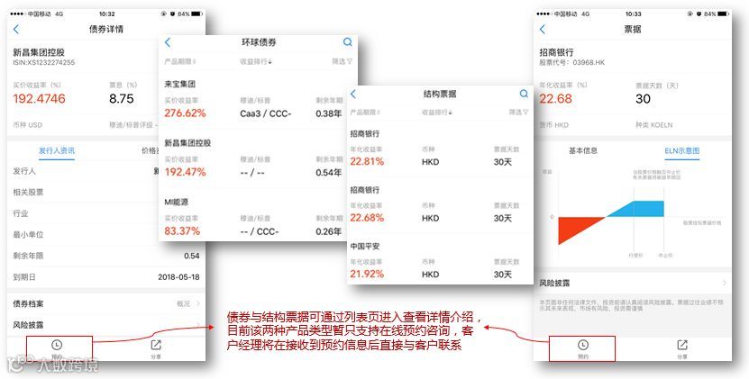 ③ 目前债券与票据暂不支持在线交易,用户可通过在线预约咨询,客户经理将在接收到预约信息后直接与用户联系。