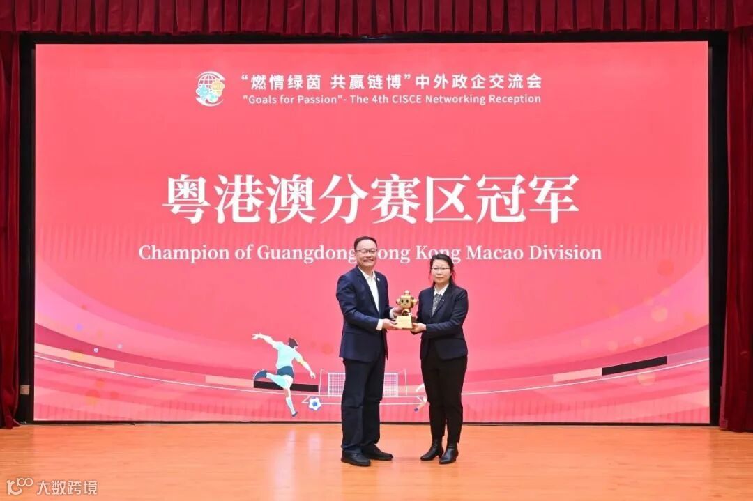 在本届邀请赛闭幕式上,广汽集团工会主席邓蕾代表广汽集团接受“粤港澳分赛区冠军”奖杯,并在中外政企交流会上与中国贸促会会长任鸿斌,副会长李兴乾、聂文慧,阿根廷驻华大使马致远及有关部委、外国驻华使馆和商协会、中外企业等相关领导进行交流,体育搭桥,深化友谊。