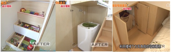 除了房间整体功能的改造,随处可见的是隐藏的收纳柜。