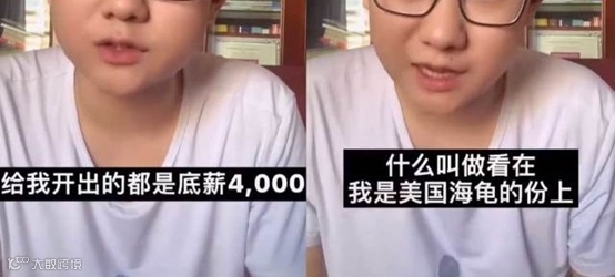 其中一个企业的老板表示,可以给他开4500,多开500块,是看在他是美国海归的份上。